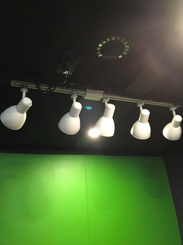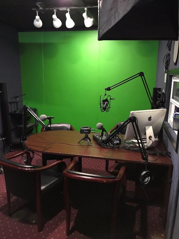 Once all the lighting was installed and some final trip pieces attached, I was able to set up the booth for audio and video production. The acoustics in the booth were fantastic–no noticeable reverb inside the room, even with the one untreated green screen wall. More importantly, the room totally blocked any ambient noise from the office building with an overall nose floor of -40dB, even with the air conditioner blowing. The inside of the metal exterior door was covered with acoustic foam squares as a precaution as it was the only other flat, hard surface and it was opposite the green screen wall.
