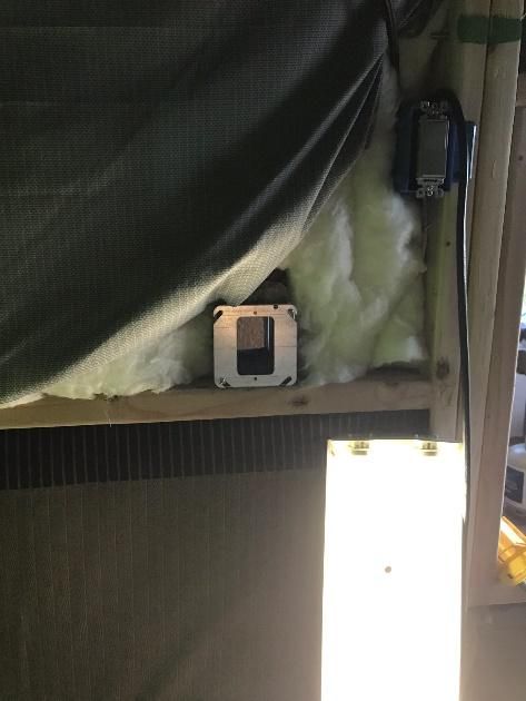 Since sound travels through openings the same way air does, having the room sealed well was important. But if it was sealed too well, it would be difficult to get air inside the room for cooling. This meant I needed another hole for air to find it’s way out. To mitigate sound, I installed a six foot section of duct to the vent in the hope of reducing ambient sounds from finding their way inside. The first central air duct was connected to another length of flexible duct which was then attached to a small in-line boost fan. My thought was that I could simply blow in air from my air conditioned office using this fan. Unfortunately, it didn’t work as planned. The fan, advertised as “whisper quiet” hardly lived up to its name. In addition, it was barely capable of handling the almost one thousand cubic feet of space inside the booth.