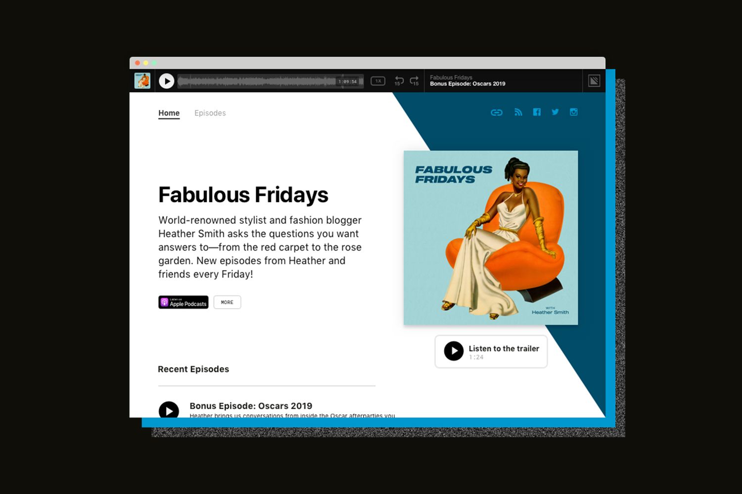 Podcast discovery still happens in the web browser. We know this, so we're arming you with the most beautiful, robust, and intelligent web players available. Whether you want to embed a single episode or an entire show, we have you covered. They're oEmbed-ready, making it effortless to use them on site-builders like Squarespace or Wordpress, blogs like Medium, and across social media. They can also report your listeners' listening speeds, share points, and drop-offs, as well! And because so many of you asked, new color customization options are also available. Our players are at the top of their game.