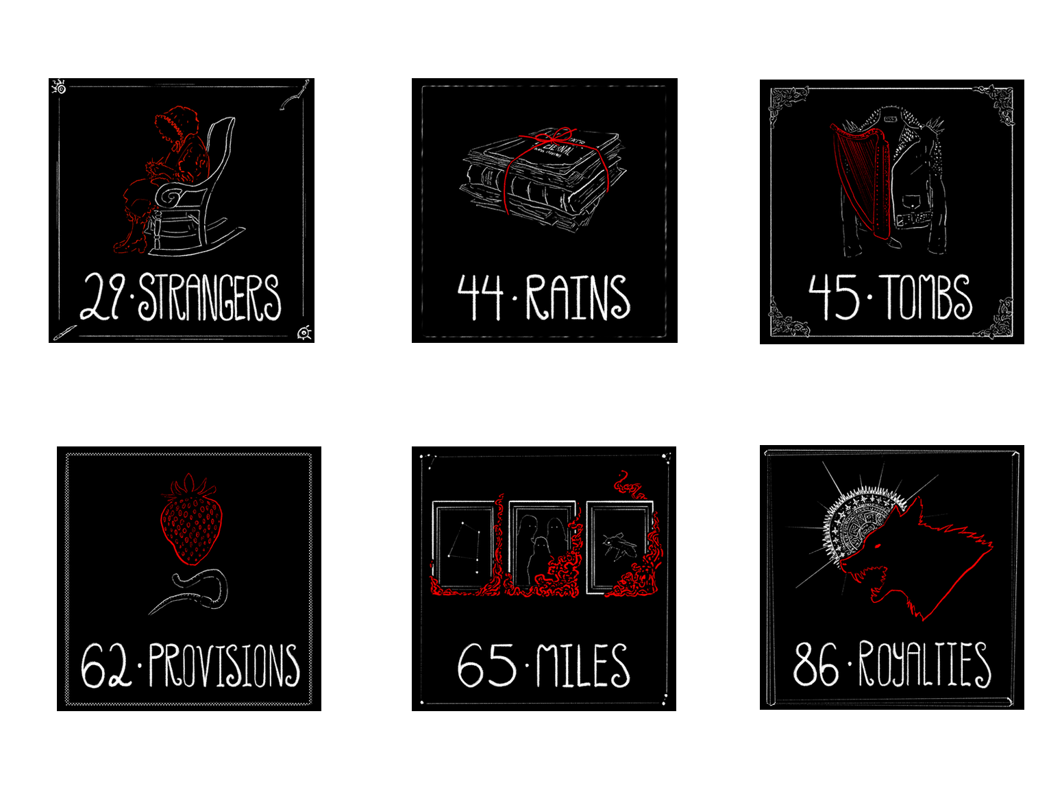 Horror series Hello From The Hallowoods has these black-and-white illustrations for each of their episodes which contrast nicely against a splash of red that becomes the image’s focal point.